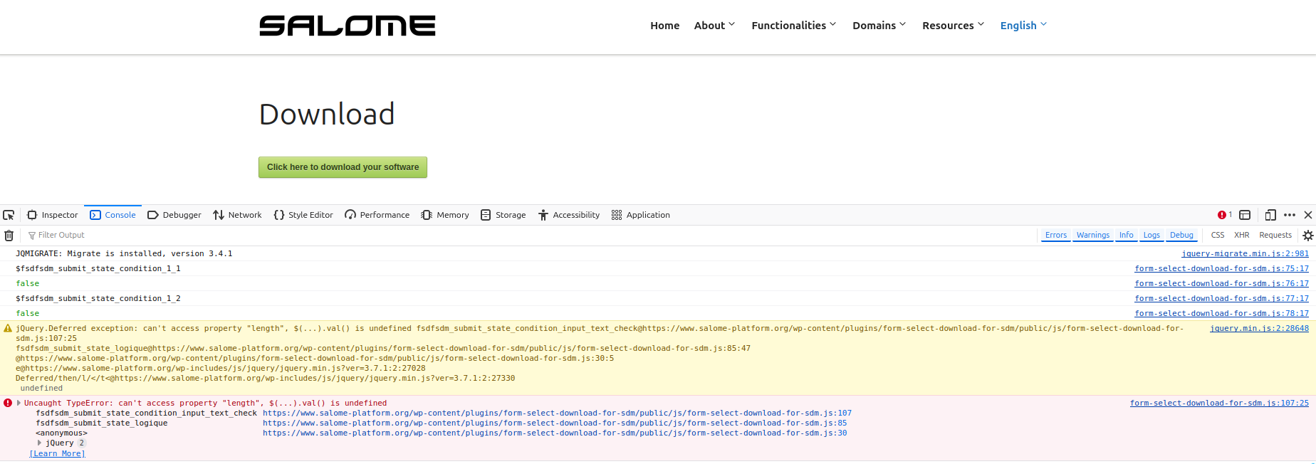 I tried twice today and was able to download SALOME successfully. Could you please check again? If the issue persists, we will escalate it accordingly.
