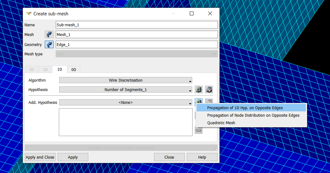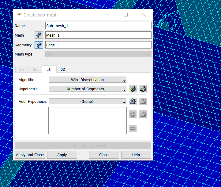 Edge_1 (or incremental id) will be automatically created in GEOM. Continue the sub-mesh creation by adding the wanted hypothesis.
